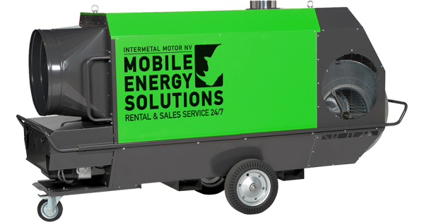 Mobiel oliegestookt verwarmingstoestel met rookgasafvoer. Geschikt voor: