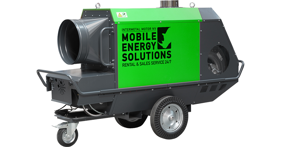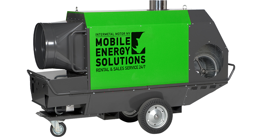 Mobiel oliegestookt verwarmingstoestel met rookgasafvoer.